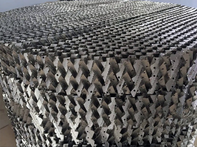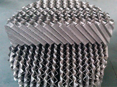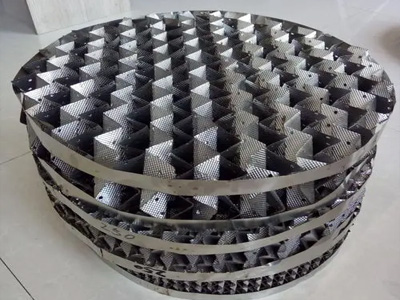 絲網(wǎng)波紋填料是用于氣液傳質(zhì)分離塔設(shè)備中的填料,是由不銹鋼絲網(wǎng)壓制成的若干波紋片,按一定的直徑要求垂直疊合組裝成的盤狀規(guī)整填料。相鄰波紋片的波紋傾斜方向相反,上下相鄰填料盤的波紋片成90°交叉。